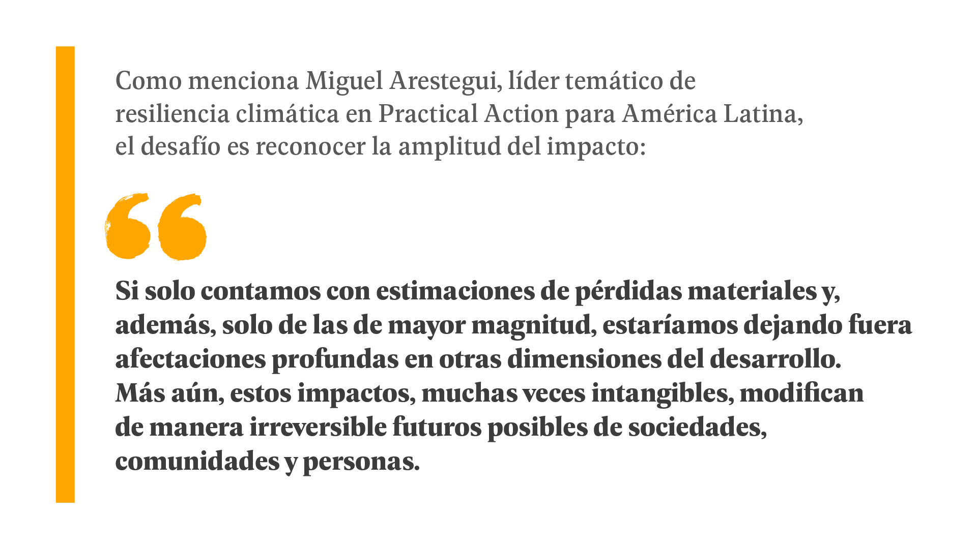 El caso del río Vilcanota-Urubamba evidencia que las pérdidas no económicas no son daños secundarios: son impactos centrales, que influyen en la continuidad educativa, en la migración de los jóvenes, en la capacidad de organizarse después de un evento extremo o en la transmisión de saberes agrícolas que hoy se encuentran en riesgo.