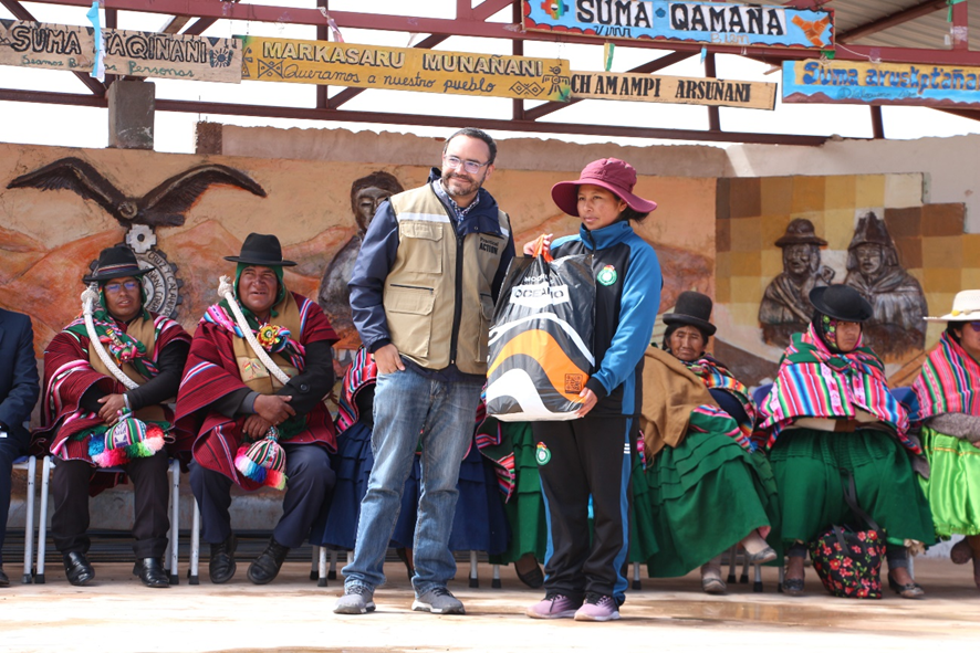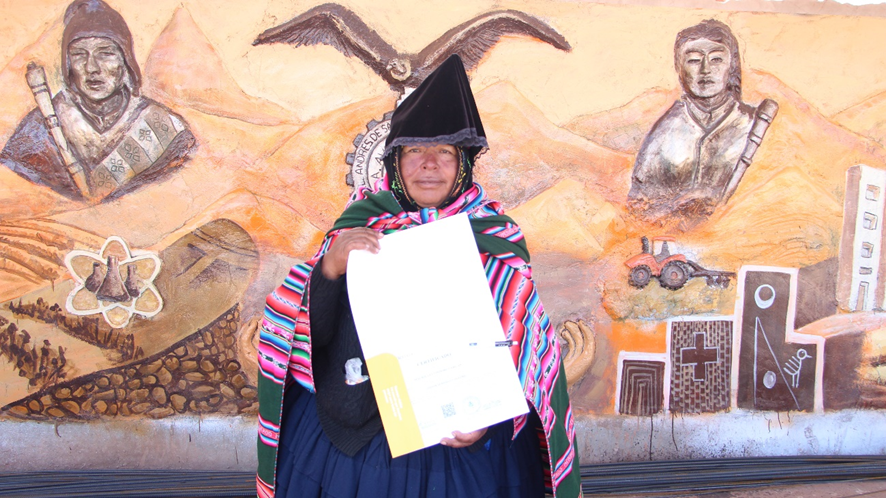 Por su parte, Mauricia, mallku tayka, expresa con orgullo el significado de haber participado: “Estamos recibiendo nuestros certificados. Orgullosa. Los hermanos nos han capacitado. Hemos aprendido de los riesgos: las heladas, el granizo, la sequía. Cómo podemos atajarnos con el agua, así.”