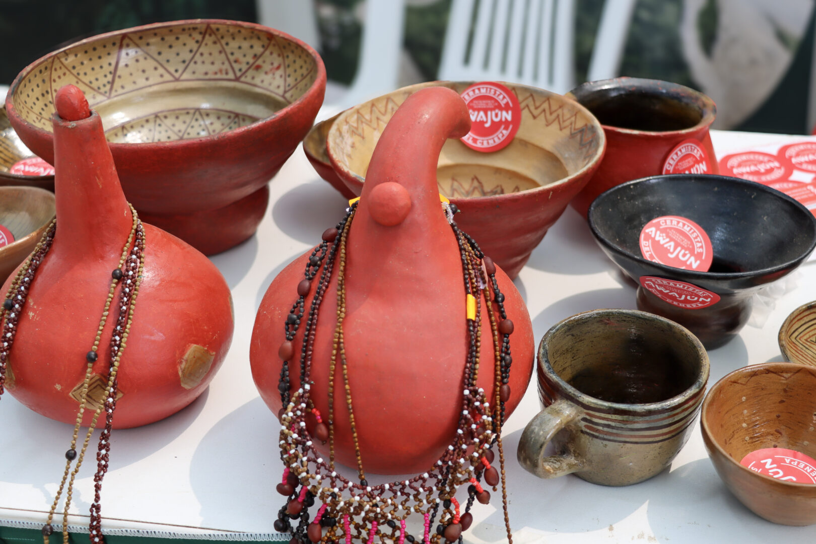 La cerámica awajún fue declarada en 2021 Patrimonio Cultural Inmaterial de la Humanidad por la UNESCO, un reconocimiento que destaca su vínculo con la naturaleza y la cosmovisión indígena. La arcilla, recolectada en las cochas, se mezcla con cenizas de la corteza del árbol apacharama antes de ser moldeada con paciencia. Con tintes naturales extraídos de plantas y técnicas como el ahumado, las artesanas dan vida a diseños únicos que representan montañas, animales e incluso el mundo espiritual.