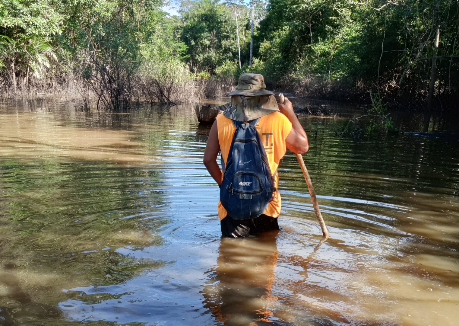 En el Norte-Amazónico de La Paz, en la comunidad Santa Anita (San Buenaventura), un grupo de personas se alista para trabajar en la rehabilitación de servicios básicos, pese a los vestigios de agua que todavía los rodean. Acciones necesarias luego de que las últimas inundaciones afectaron el acceso al agua y destruyeron zonas productivas.