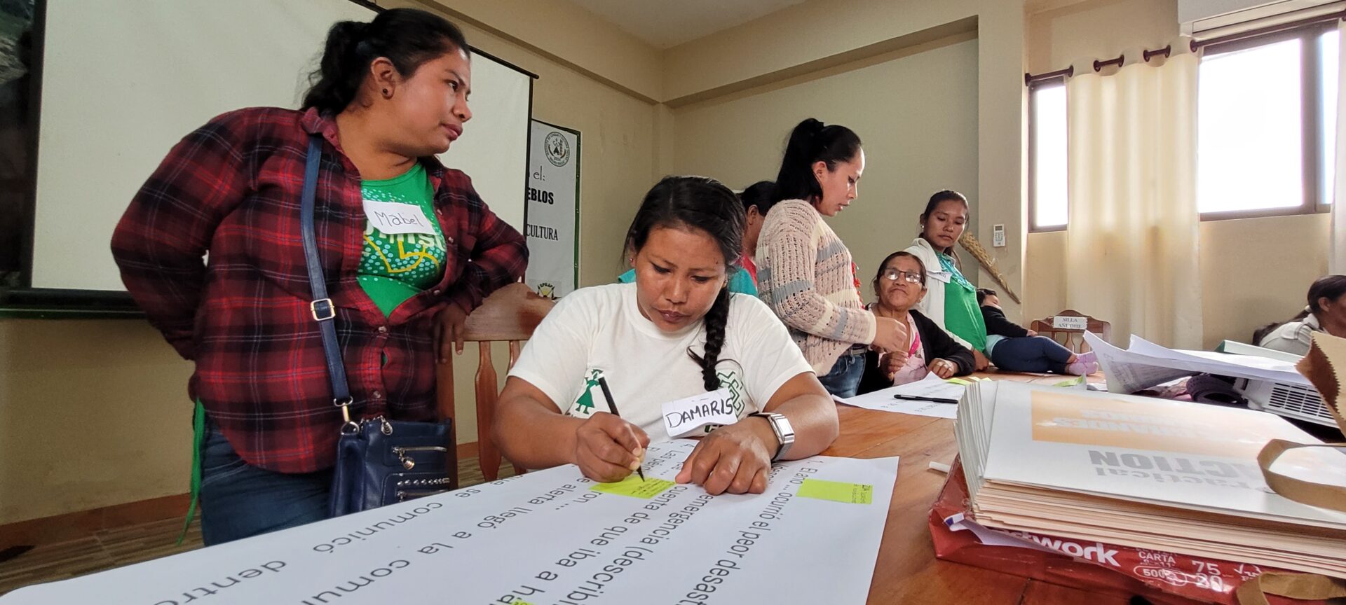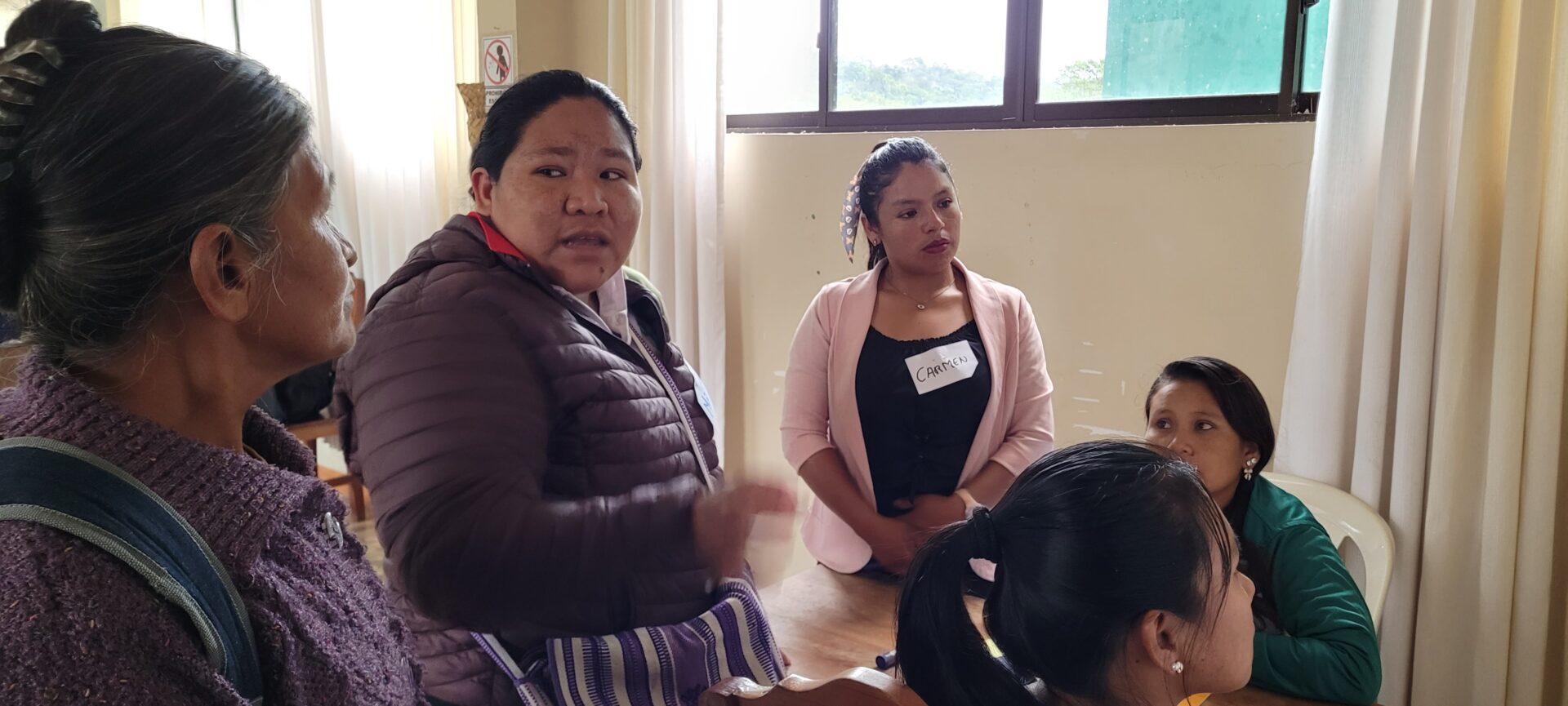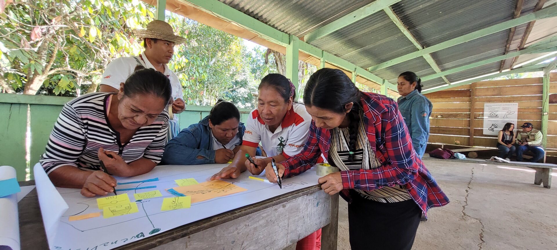 El primer encuentro contó con más de 30 mujeres que trabajaron juntas en Tumupasa, la capital tacana, para conocer y entender los conceptos y la metodología. Durante dos jornadas estas mujeres se prepararon para liderar las réplicas del proceso en comunidades de su territorio.