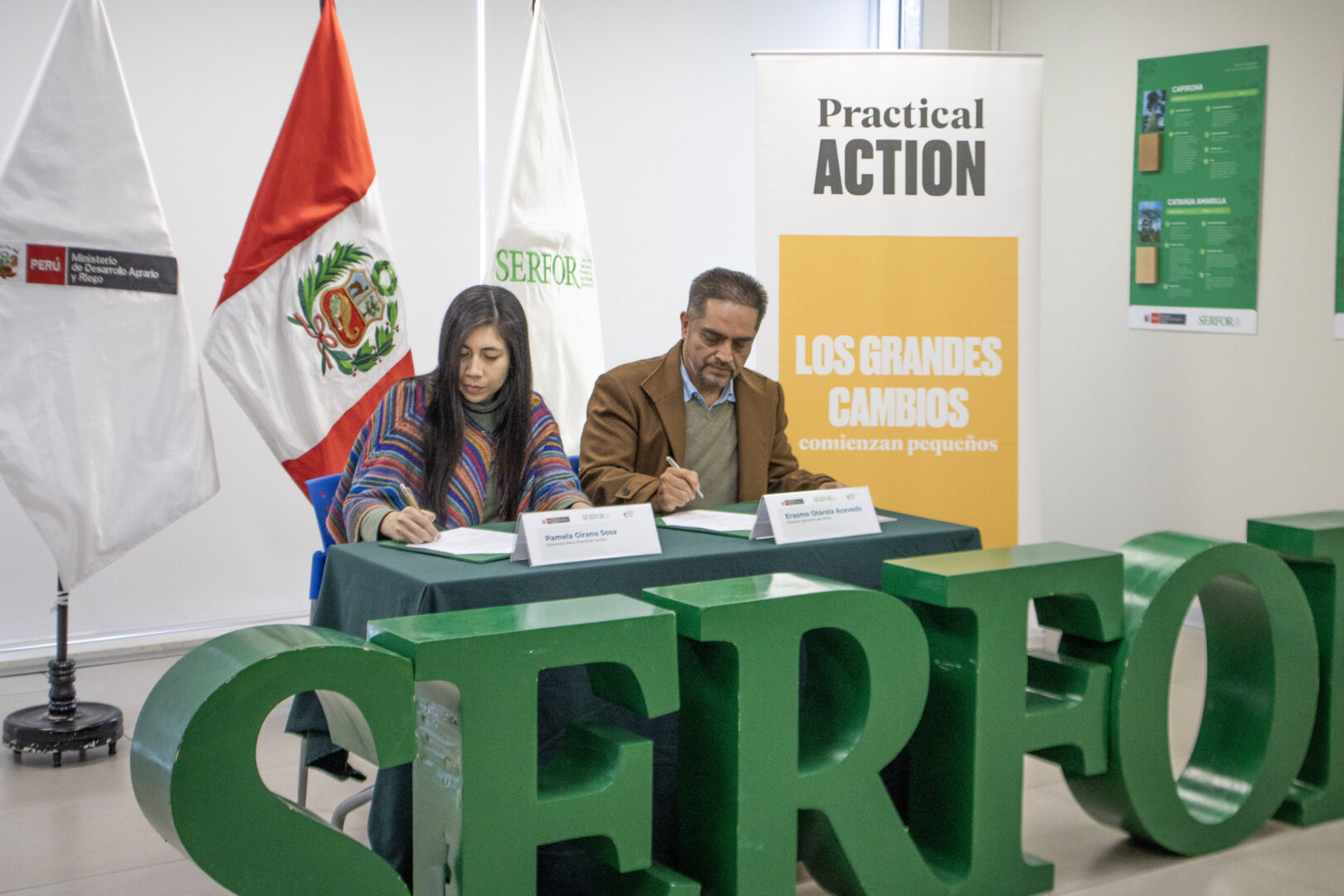 Lima, 5 de agosto de 2025.- Conscientes de la necesidad de apoyar a las comunidades más vulnerables frente a la crisis climática, el Servicio Nacional Forestal y de Fauna Silvestre (SERFOR) del Ministerio de Desarrollo Agrario y Riego (MIDAGRI) y la organización Practical Action firmaron un convenio marco de cooperación interinstitucional que busca fortalecer el uso sostenible de los recursos forestales y de la fauna silvestre, con énfasis en su conservación y protección.